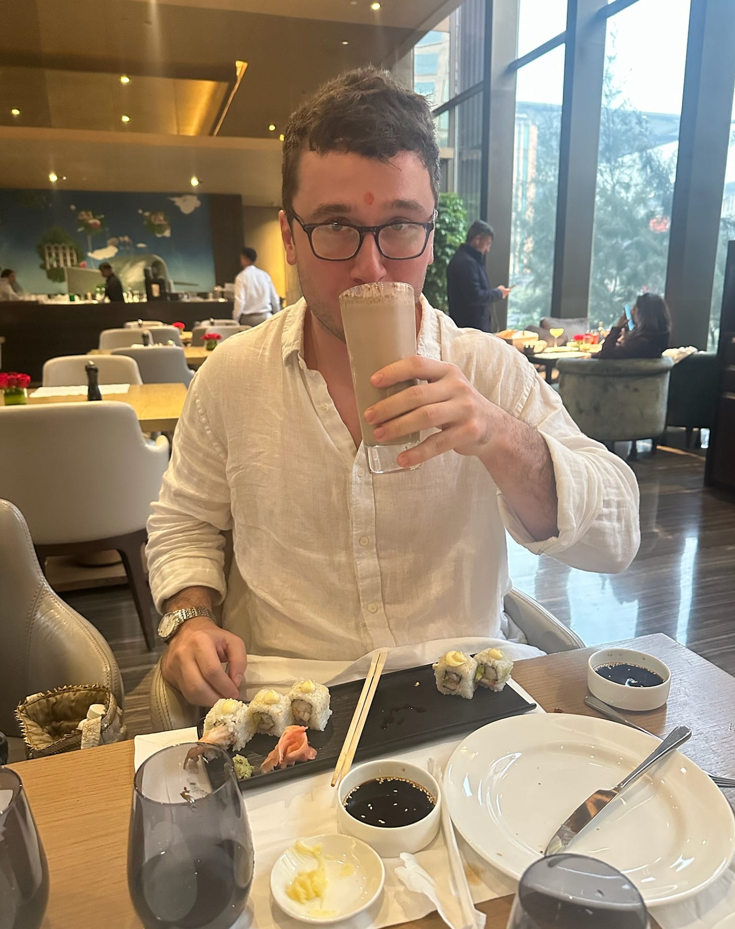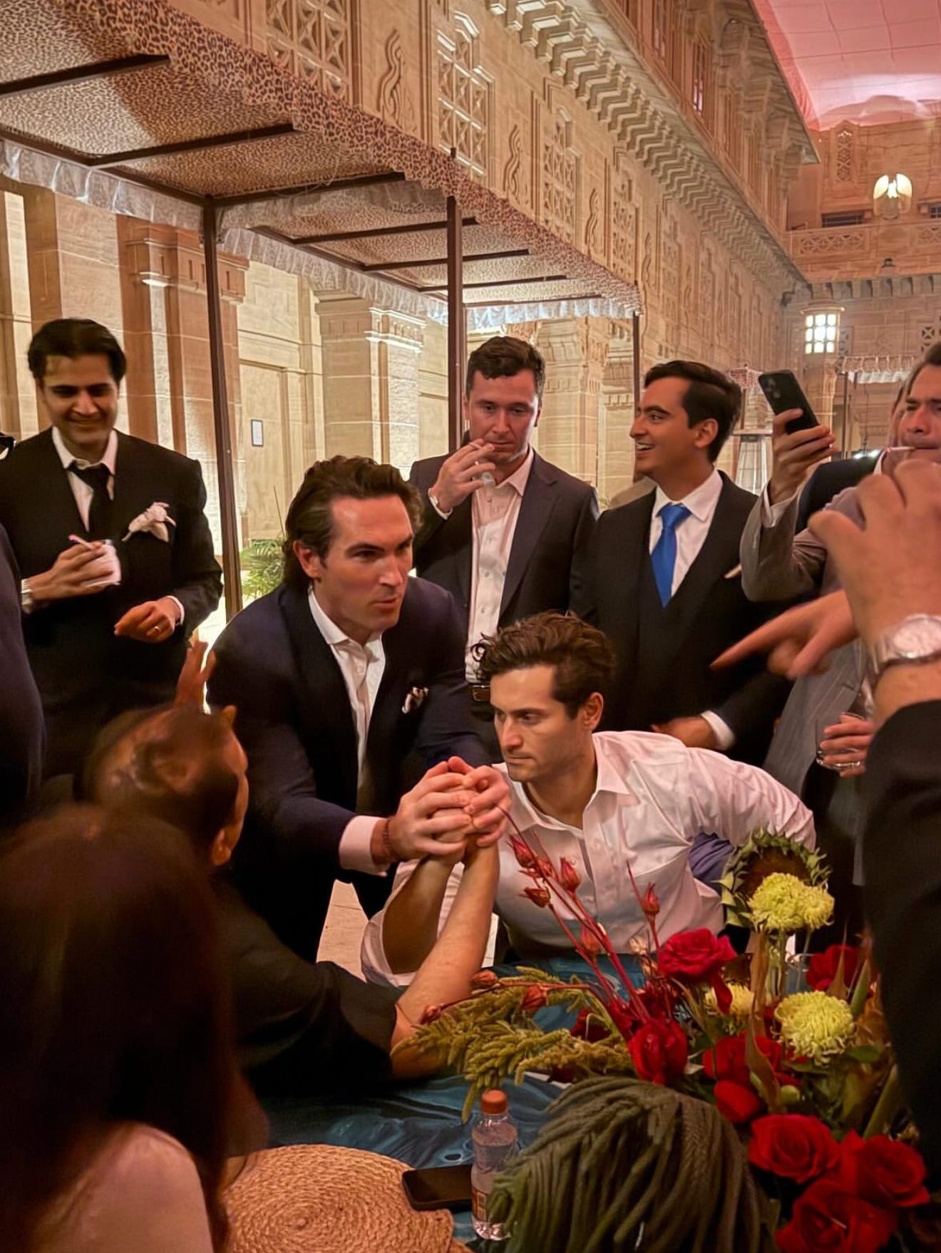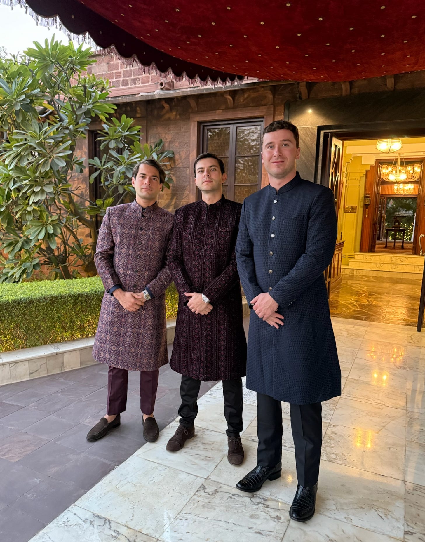 Wake up at 10:45, make breakfast right at close. End up sharing a table with the dude who bid $200k on the shoes; he’s hysterical. He also stole Brody’s backpack. Chat with a couple of Quinn’s friends as well. We all look terrible. Someone’s mother was in the restaurant; she found my jokes to be funny. Take another dive in the pool (cold plunge, Huberman would be proud). Then throw on a linen shirt and scarf for the Bahu Swagat. Hit the bar, grab a drink and some food. The band is playing. Turns out, I know half of the band. Toni, Sebo, and Ben are on the drums. “Not bad,” I think. I run back to the room. Come back down. Eight men from the wedding are in all black holding rifles. “These ceremonies are insane,” I think. Post up on a bench with Brody, Ben, and Lawrence. I’m exhausted; it’s been a long wedding. Stand up to watch Quinn’s parents dance. Then Quinn dances. It’s all beautiful. I grab ice cream. Lawrence tells me, “ice cream is a kid’s food.”