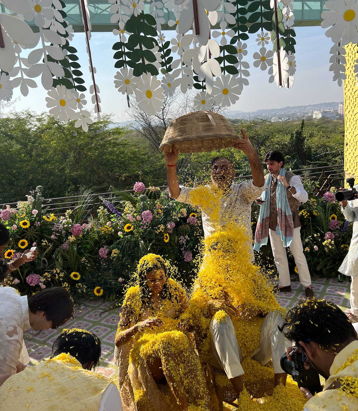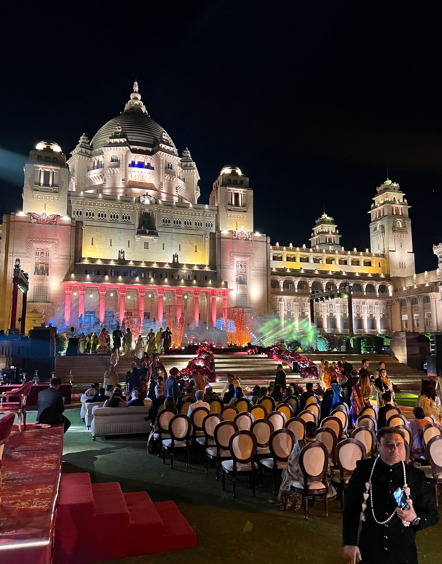 Take a Monday evening flight from New York to New Delhi, land Tuesday night. Wednesday night brings a welcome party in New Delhi. Thursday: Welcome lunch in New Delhi. Friday AM: fly to Jodhpur. Welcome lunch at the Umaid Bhawan Palace. That night? Sangeet party at Fort Mehrangarh with an after party that follows. Saturday: Haldi at the Umaid Bhawan Palace, Baraat that afternoon, wedding in the courtyard that evening, after party inside at 2 AM, and we run it back on Sunday with a Bahu Swagat the following afternoon before a Christian wedding that evening at the palace. Oh, and, yes, one more after party because why not? An aggressive week.