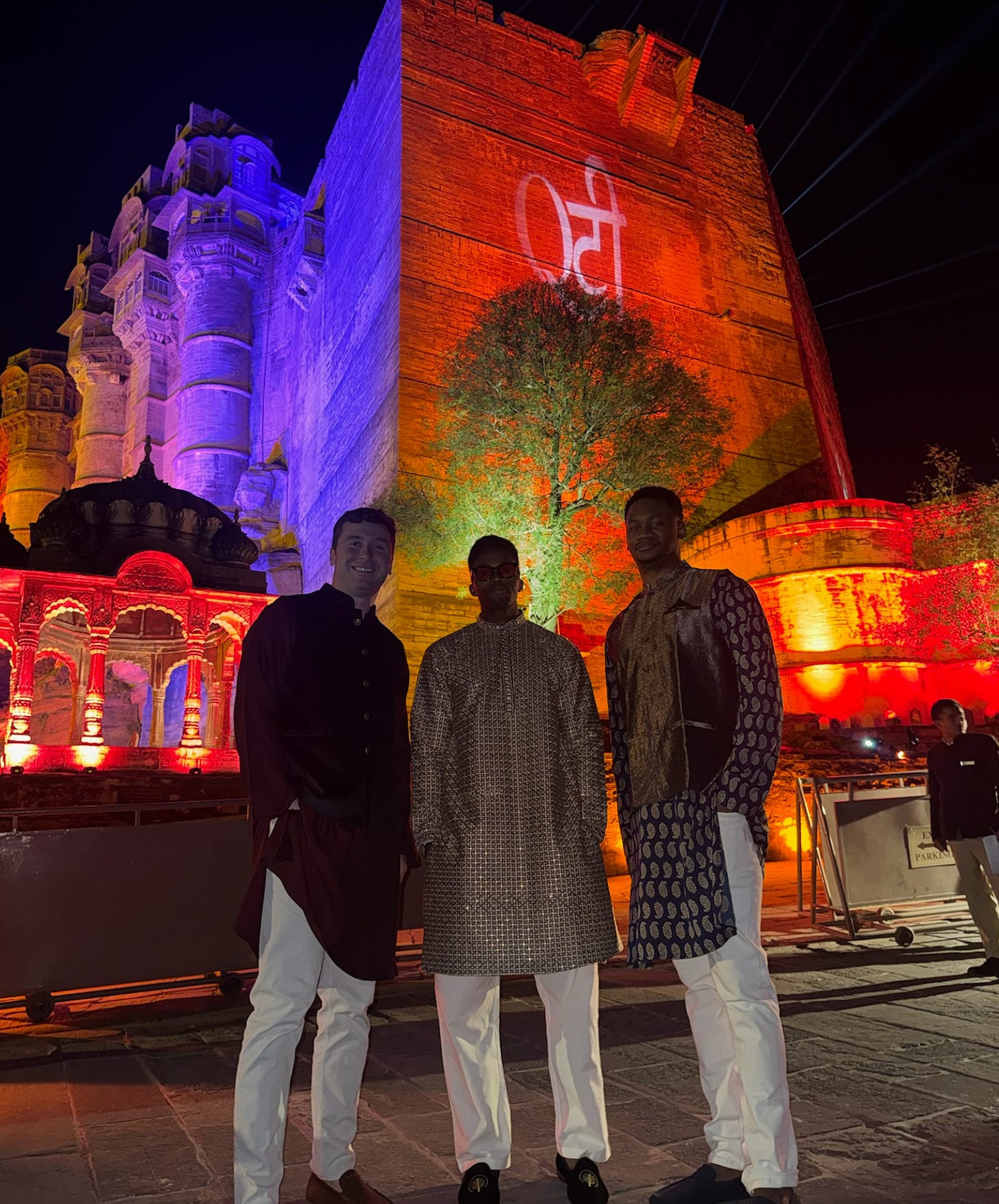Wake up at 6. Brody can’t find his backpack. Don’t have time to look; time to get dressed for the Sangeet. Lawrence and I practice our dance routine again in the hotel. Brody lays in bed doomscrolling on his phone. We throw on some kurtas (I’m wearing red with a black vest that Lawrence scooped for me), then we Uber to Fort Mehrangarh. We thought we were 30 minutes late. We were still 30 minutes early.