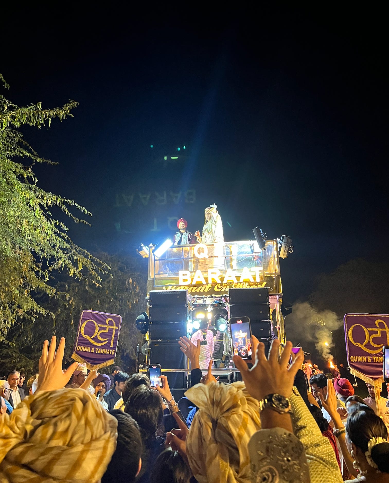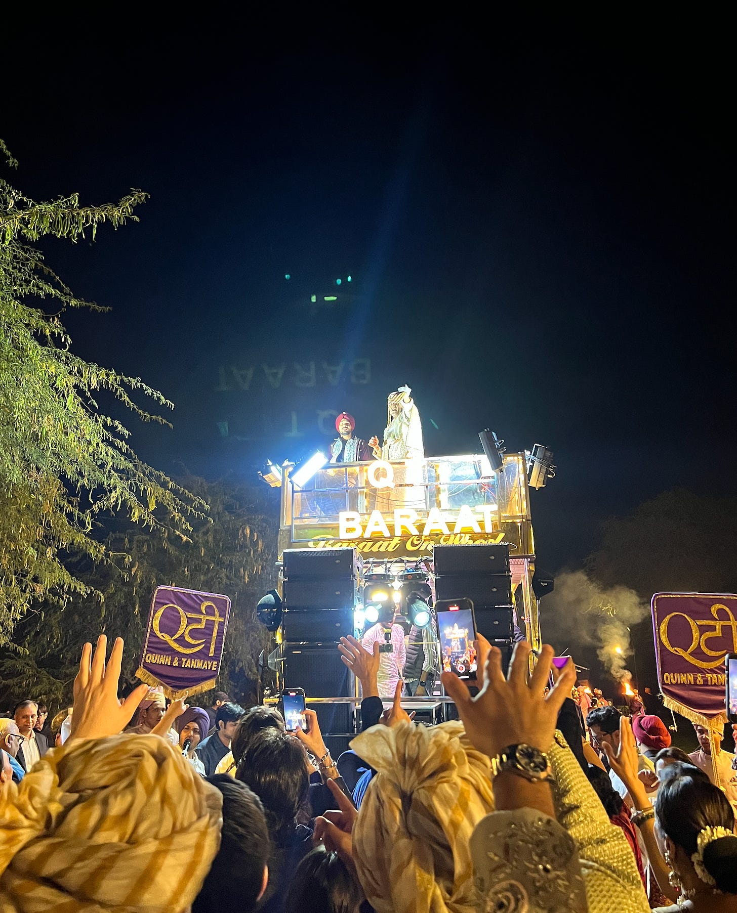 Tanmaye gets on a horse. It’s wearing more jewelry than him. Music starts. He’s moving at a speed of less than 1 foot per hour. The band is crushing it. We all start dancing. A truck pulls up. The trailer behind it is filled with beers and cocktails enclosed in water bottles. Basically, advanced High Noons. I grab a couple. More dancing. Tanmaye’s horse makes it 17 feet after an hour. He is then moved to a Rolls Royce. His childhood driver, who hasn’t stopped smiling in 3 days, is driving. He regularly stops driving to get out of the car and dance. Or get on top of the car, dancing. Their top speed never surpasses 1 mph.