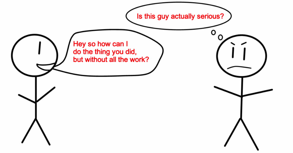 And if you do something 200 times, it’s pretty difficult not to find some level of success. But no one wants to hear that growth hack, because it isn’t a growth hack. It’s boring. Tedious. Difficult. Time-consuming. It’s not efficient.