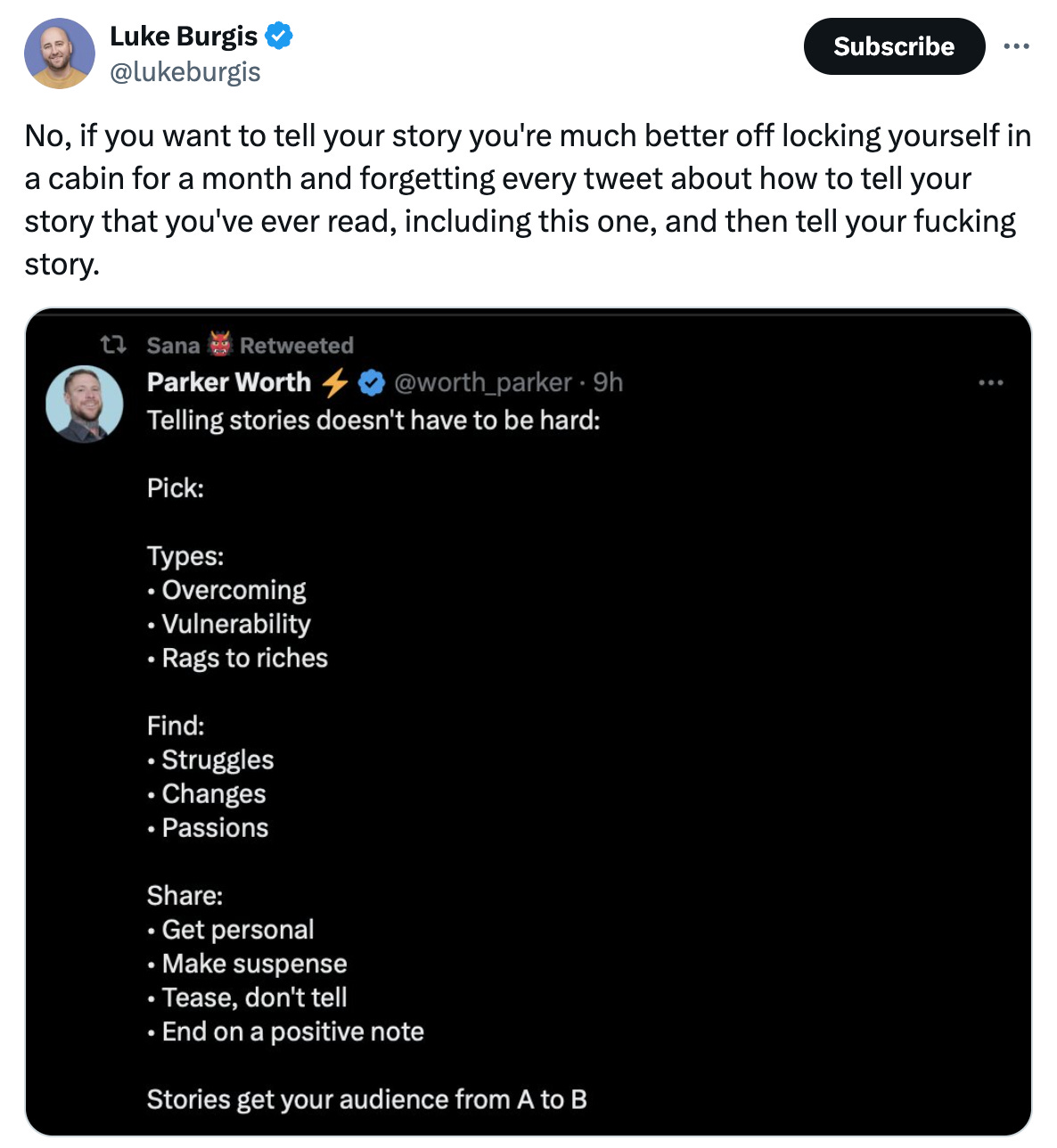 Luke is an author and modern-day philosopher, and his book, Wanting, is one of the best pieces of literature to be published in the 2020s. So yes, Luke knows a thing or two about writing, and I echo his sentiment in the above tweet.