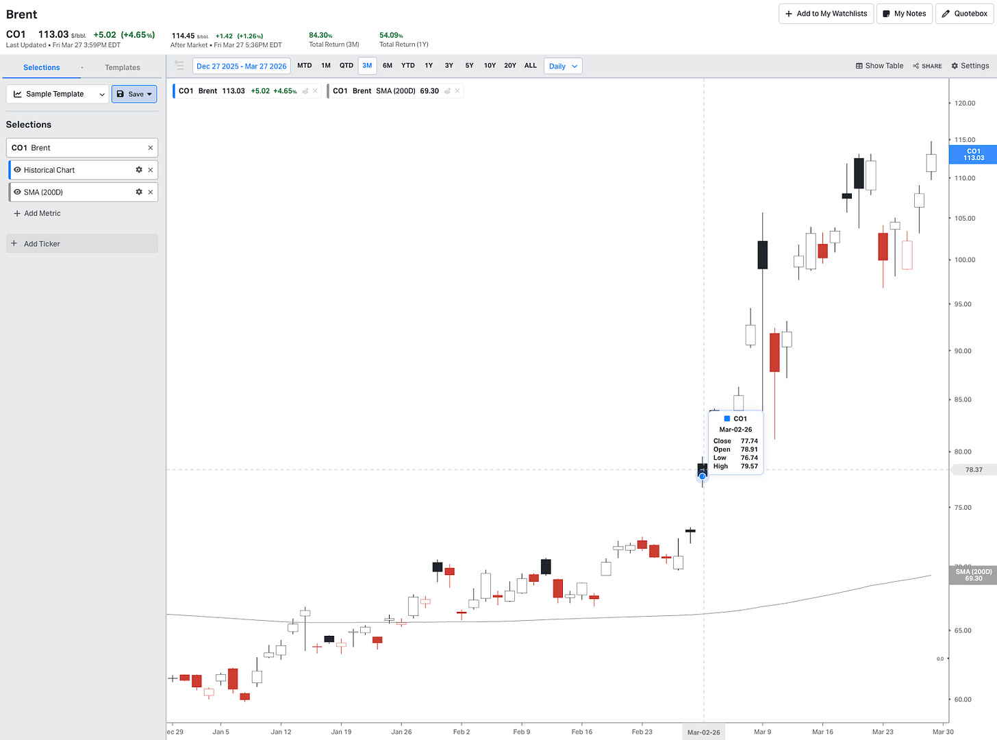 I have no idea what will happen next. No one does. But sometimes the simple thesis is the right thesis. If you saw the news of the Iran strikes on February 28th, and then on March 2nd thought to yourself, “Hmmm, shouldn’t oil be higher given that… 20% of the world’s oil supply is cut off?" and then went long oil, you would have been up ~50% despite being a day “late” to the trade. Not particularly priced in, was it?